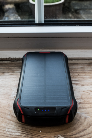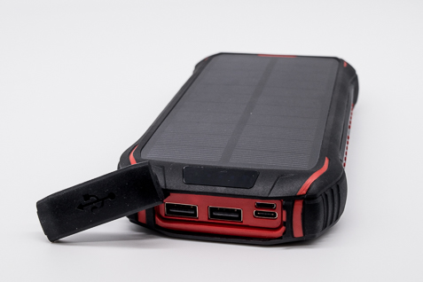 This bad boy is in black and a mix of red throughout the design, it feels and looks well-made. The solar panel looks fantastic; the unit as a whole is heavy weighing in at 560g, the battery capacity of this portable battery charger is 26800mah which is a lot of power. To achieve this much power there are two 13,400Mah batteries inside. One of the smart things I like about this unit is when the solar panel detects light and starts charging there is a light symbol of the sun that lights up to let you know its charging from the solar panel. (not sure how long it would take to charge the full 26800mah from the solar panel) my guess is a very long time (I will update you on this in the summer of 2020)