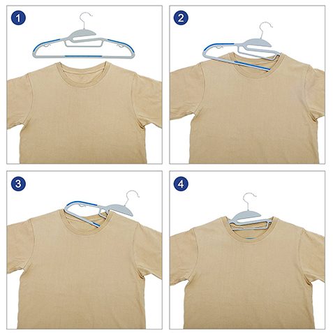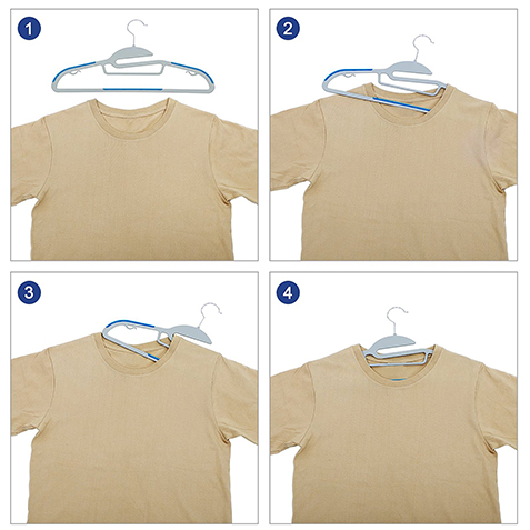 The collar part is designed with an S-shape opening for easy hanging and retrieving T-shirt or knitwear, preventing the collars from being enlarged.